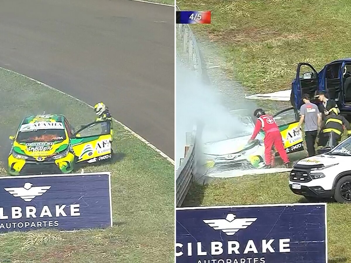 Luego, el piloto tucumano explicó: “Tuve dos curvas antes, un pequeño toque, automáticamente se paró el motor y se empezó a prender fuego el auto. Solamente pensé en bajar lo más rápido posible porque me estaba entrando por los pies el fuego.